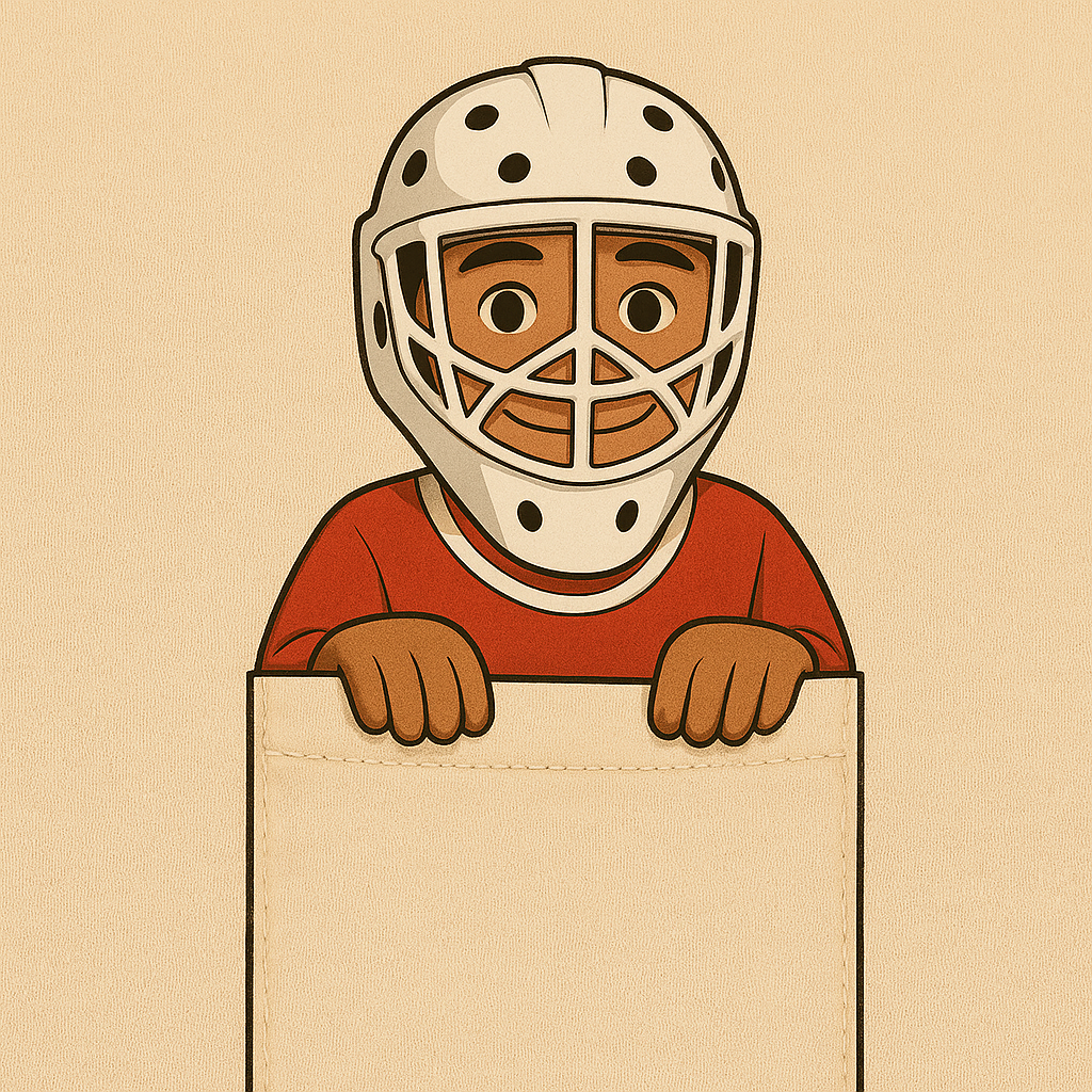 This Pocket Person’s got grit in their eyes and ice in their veins — popping out of your chest pocket ready for face-off.